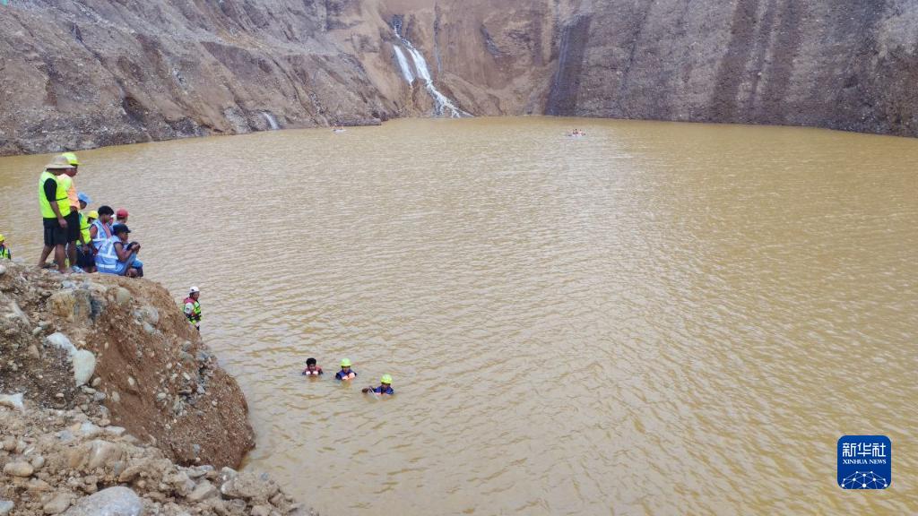 8月14日,救援人員在緬甸克欽邦帕甘鎮發生坍塌的玉石礦區搜救倖存者。