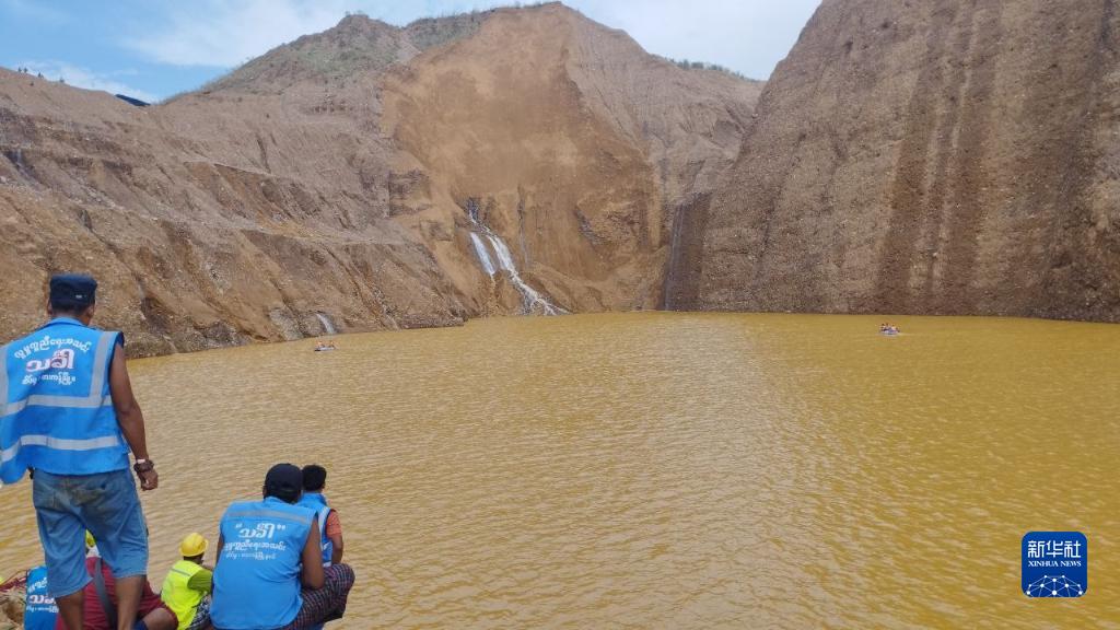 這是8月14日在緬甸克欽邦帕甘鎮拍攝的發生坍塌的玉石礦區。