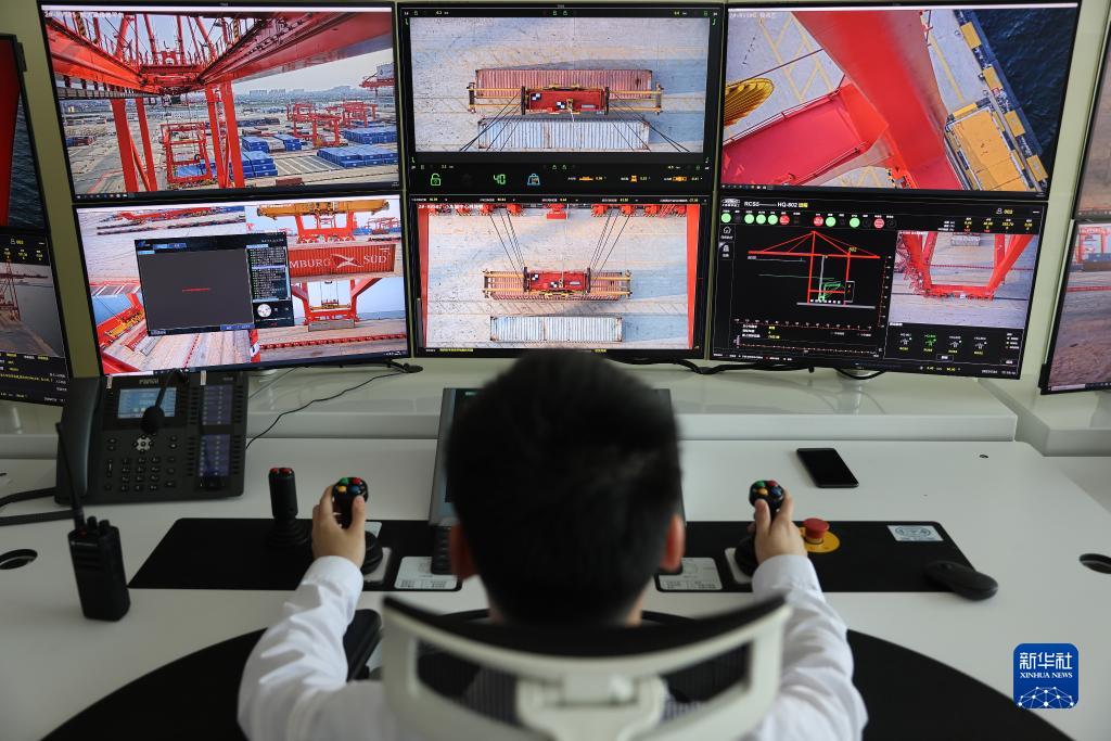 在江蘇啟東呂四港碼頭,工作人員在作業(2023年7月24日攝)。