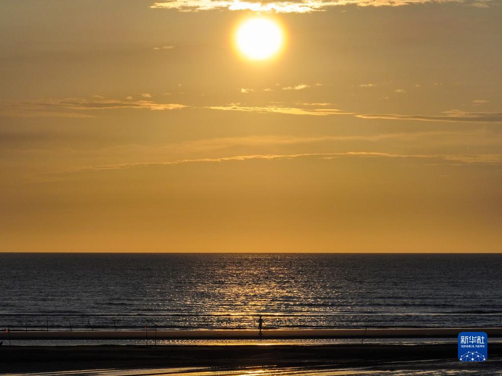 江蘇省啟東市黃金海灘景區日出景色(2023年7月25日攝,無人機照片)。