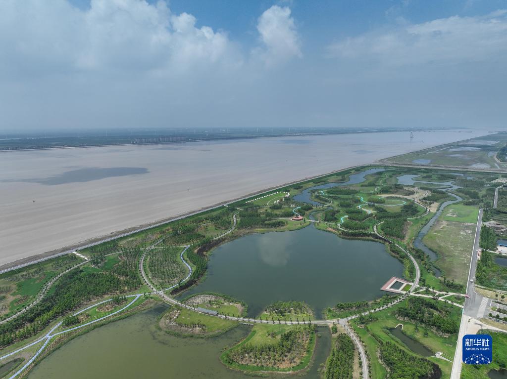 這是江蘇省啟東市濱江生態綠廊(2023年7月24日攝,無人機照片)。