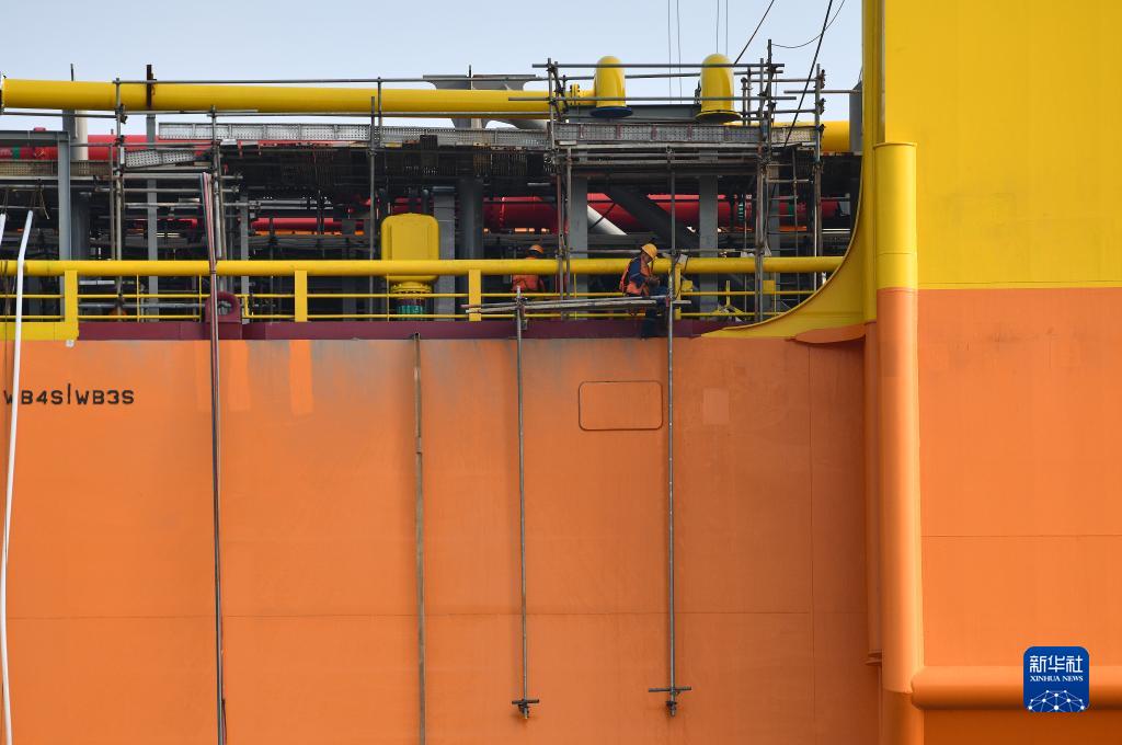 江蘇省啟東市啟東海工船舶工業園的工人在施工(2023年7月23日攝)。