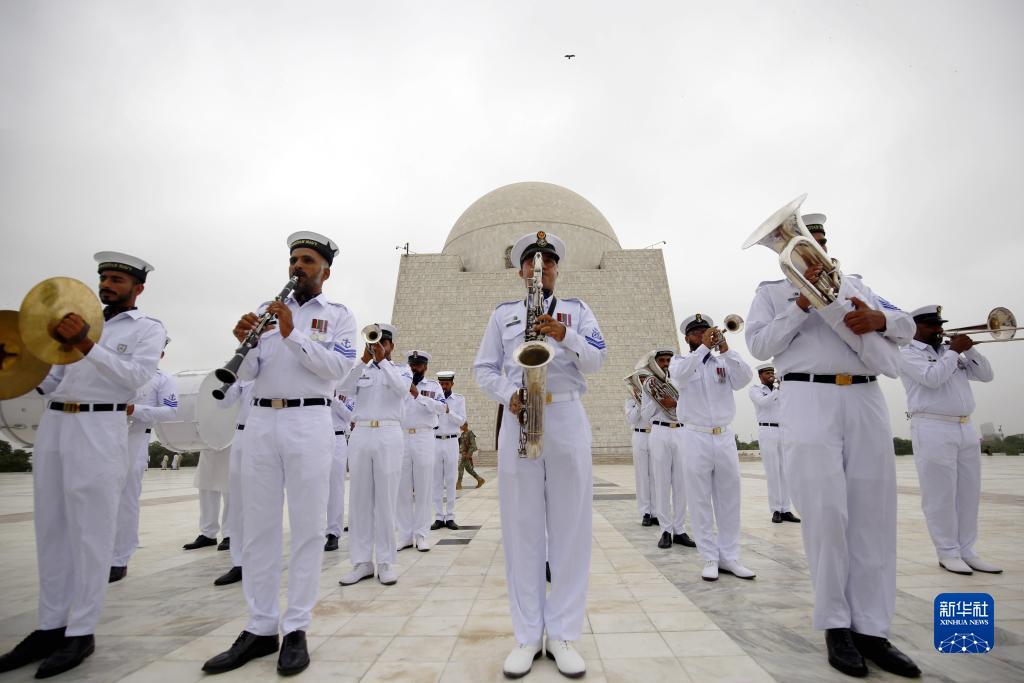 8月14日,在巴基斯坦卡拉奇,軍樂團在國父穆罕默德·阿里·真納的陵墓前演奏,慶祝獨立76周年。