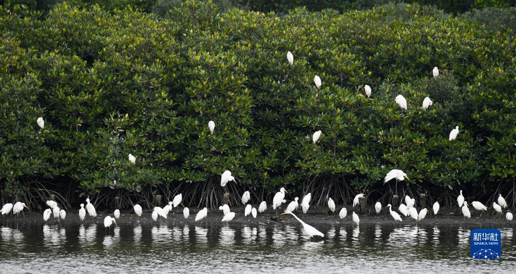 鷺鳥在海南東寨港國家級自然保護區內休息(2022年1月28日攝)。
