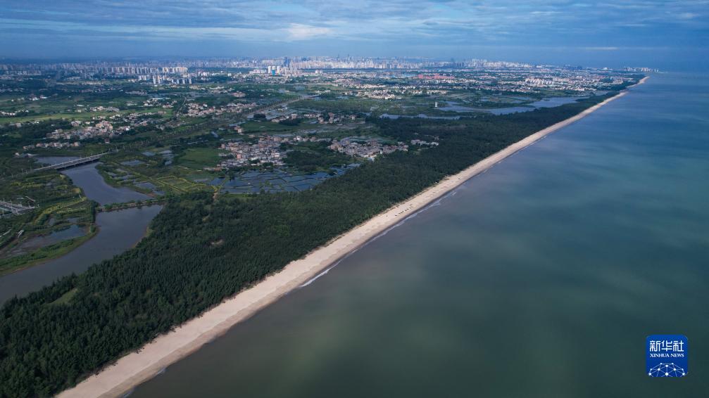 航拍海口市江東新區的海岸線(無人機照片,8月6日攝)。