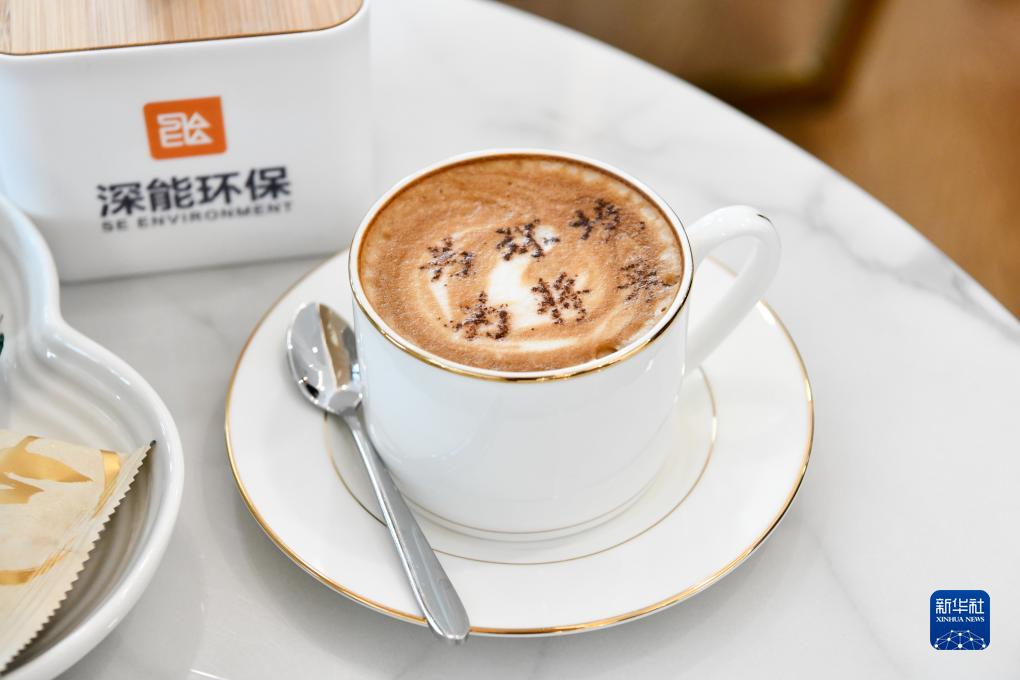 這是深圳龍崗能源生態園內的特色咖啡,上面寫着“為環境、為將來”(8月8日攝)。