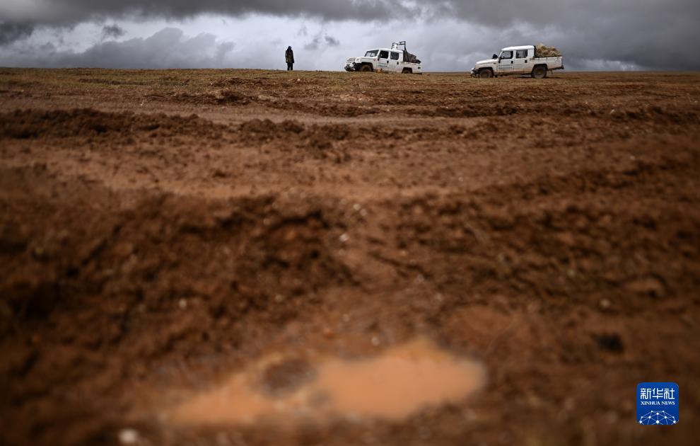 可可西裏管理處卓乃湖保護站隊員在對受困車輛開展救援(6月16日攝)。