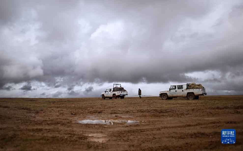 可可西裏管理處卓乃湖保護站隊員在查看車輛受困狀況(6月16日攝)。