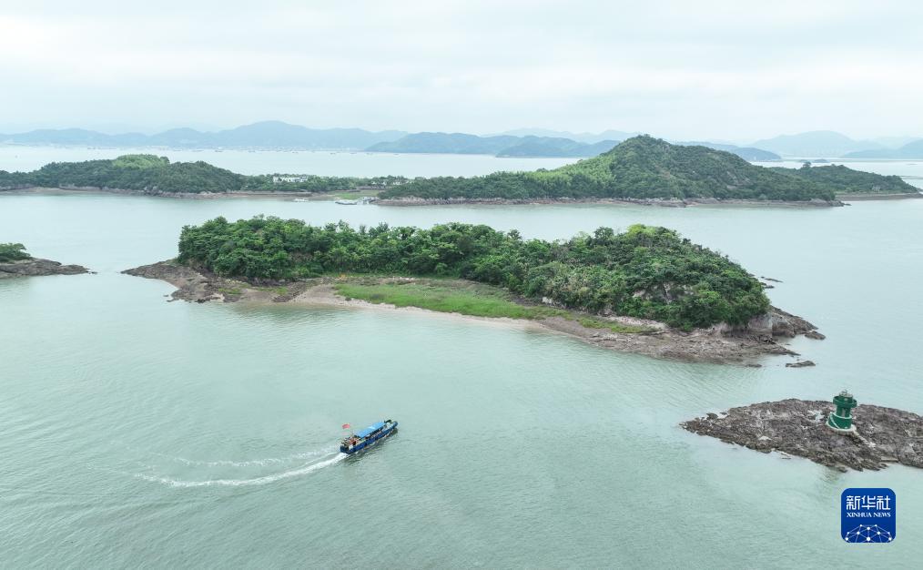寧海灣海島護鳥隊員在海島間巡邏(6月13日攝,無人機照片)。浙東寧海灣是重要的鳥類棲息地,位於灣區的強蛟鎮組建了由漁民、民警、黨團志願者等組成的海島護鳥隊,看護這片鳥類樂園。