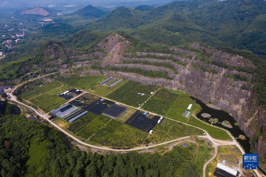 浙江省湖州市吳興區東林鎮三合村一處廢棄礦山經過生態修復後成為花卉種植基地(8月14日攝,無人機照片)。