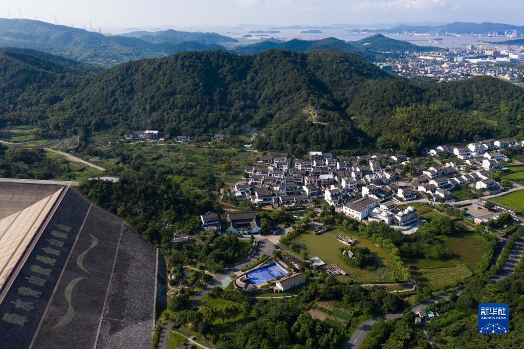 空中俯瞰舟山市定海區新建村(8月7日攝,無人機照片)。新建村被評為中國最美休閒鄉村、國家級美麗宜居示範村、全國首批森林鄉村、全國鄉村旅游重點村等榮譽稱號。