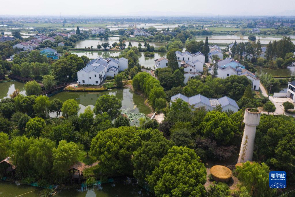 湖州市吳興區東林鎮泉益村通過全域土地綜合整治建設美麗鄉村,打造具有水鄉特色的綠色生態旅游村(8月14日攝,無人機照片)。