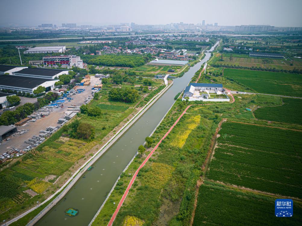 寧波市江北區西大河景色(8月11日攝,無人機照片)。近年來,寧波市江北區通過堤岸整治、河道清淤、建立微循環系統等方式,提高了西大河的水體自凈能力和水生態環境。