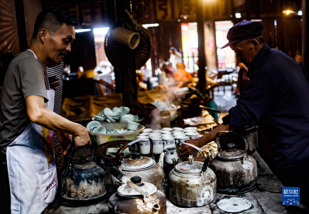 茶館裏的夥計在工作(8月7日攝)。