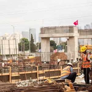 8月14日,建設人員在以色列特拉維夫輕軌綠線G3-4標段工程施工現場作業。
