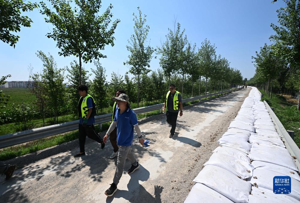 目前,大清河洪水紅色預警仍在生效中,天津市行洪工作持續進行。8月15日,在位於天津市靜海區&頭鎮清北地區北圍埝上,由應急搶險專家、基層黨員幹部等組成的應急搶險隊頂着烈日巡護、排查堤壩風險,確保洪水順利下泄和人民群眾生命財産安全。