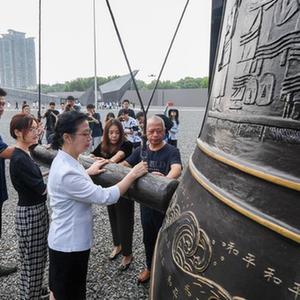 8月15日,參觀者在侵華日軍南京大屠殺遇難同胞紀念館參觀。
