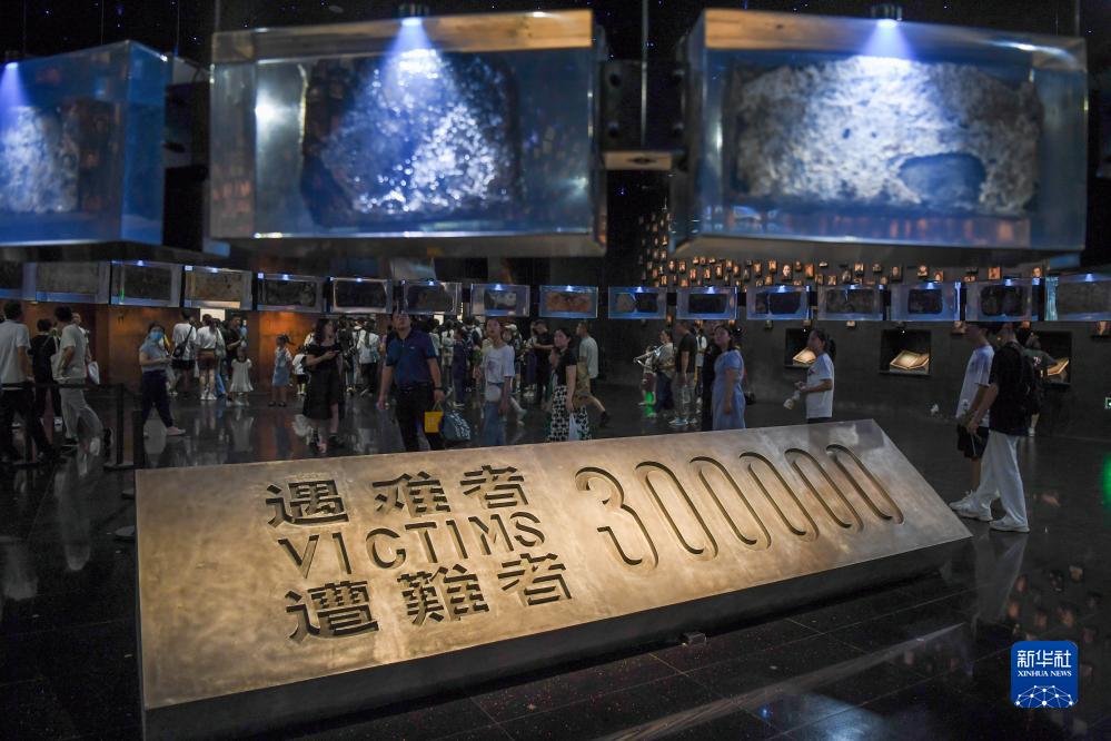 8月15日,參觀者在侵華日軍南京大屠殺遇難同胞紀念館參觀。