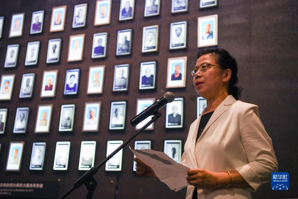 8月15日,南京大屠殺倖存者後代代表、南京大屠殺歷史記憶傳承人曹玉莉在活動中發言。