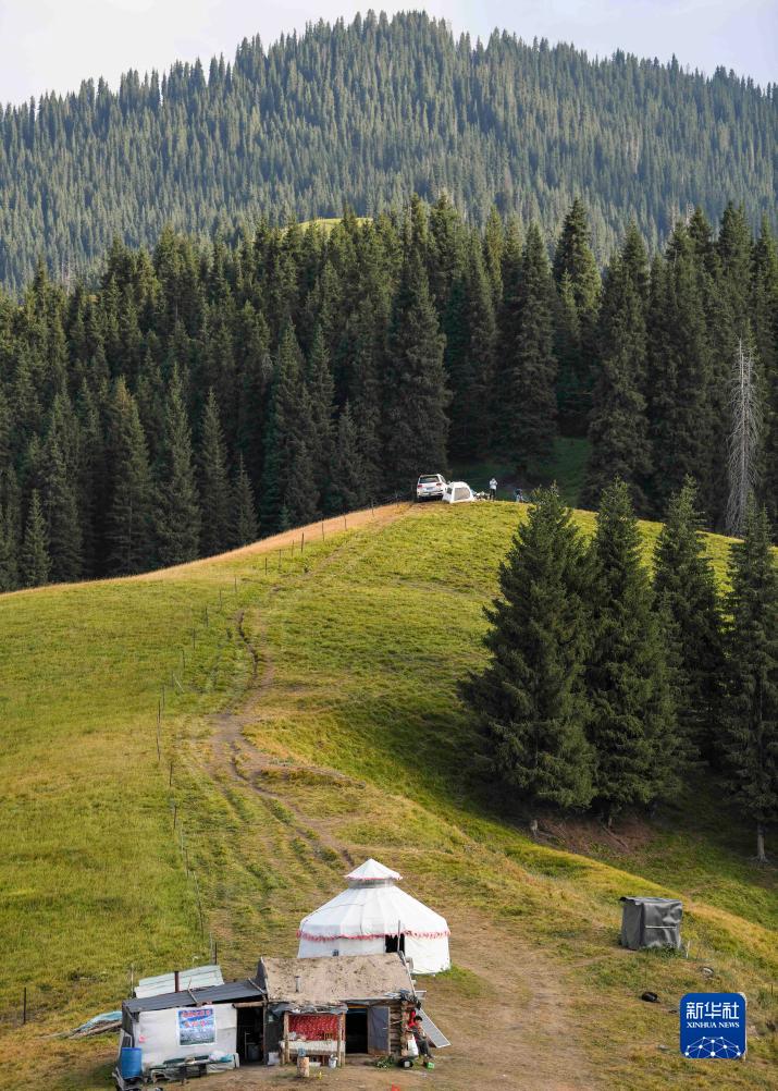 索爾巴斯陶(哈薩克語,意為“鹼泉”)地處新疆天山山脈中部的北麓,平均海拔2000多米,是新疆昌吉市廟爾溝鄉重要的高山牧場。走進這裡,滿目生機勃勃:草原隨着山勢起伏,森林遍佈,牧民居住的氈房和小木屋點綴其間,牛羊悠閒覓食……美不勝收。良好的生態環境承載着當地牧民的生産生活,同時也吸引人們前來露營、賞景、體驗牧區傳統與現代並存的生活方式。