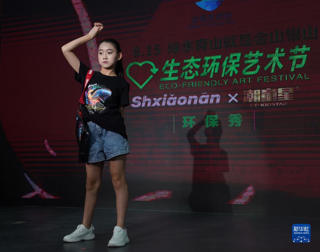8月15日,小模特在藝術節開幕式上展示以海洋生物多樣性保護為主題的服裝。