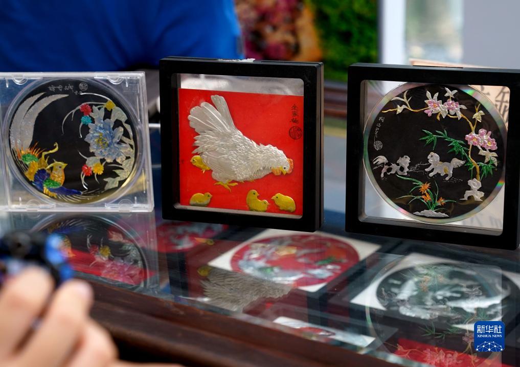 藝術節現場展示的用易拉罐創作的環保手工作品(8月15日攝)。
