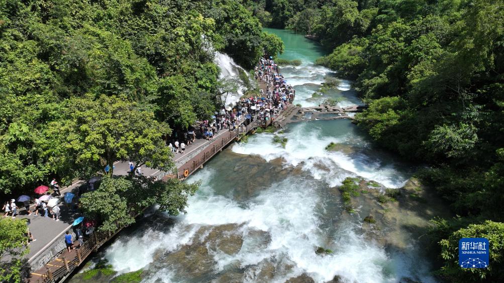 日前,前往貴州省荔波小七孔風景區游玩的游客激增,景區各部門通力合作,服務游客,每天迎客超過6.2萬人次。