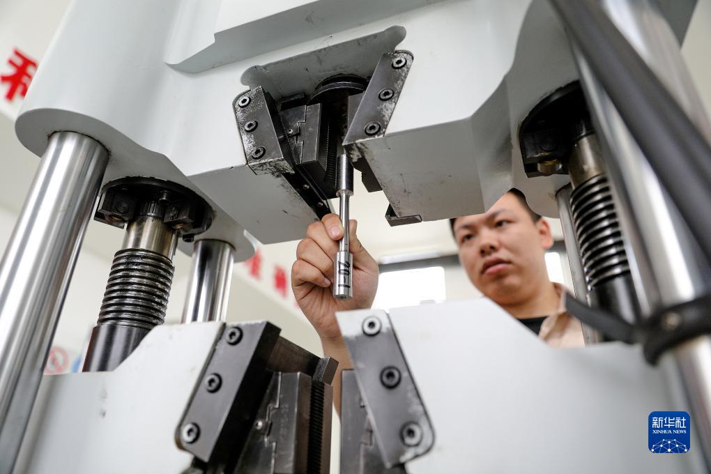 8月15日,河北衡水高新技術産業開發區一家交通科技企業的工人在測試産品質量。