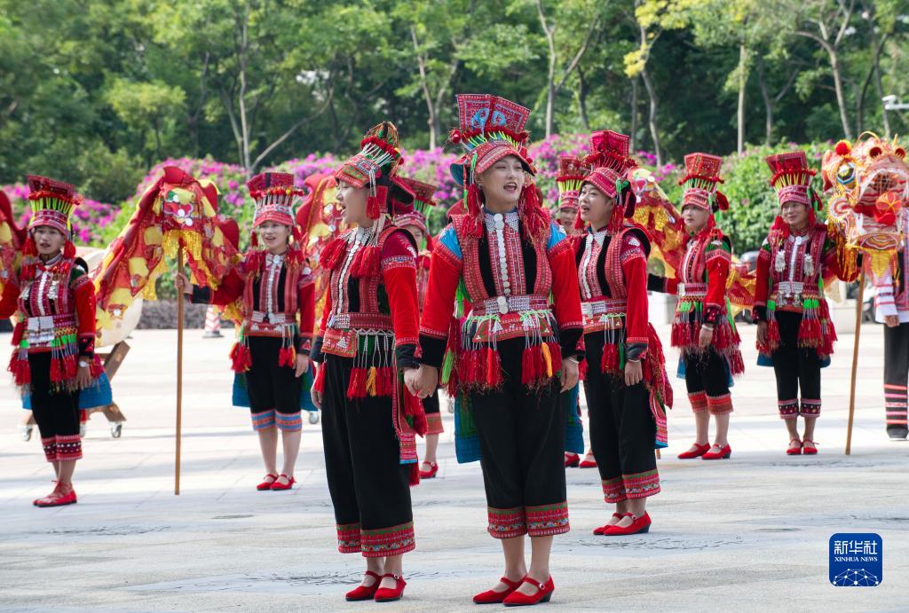 8月15日,參加第11屆中國·南亞東南亞藝術周開幕式的演員在進行表演。