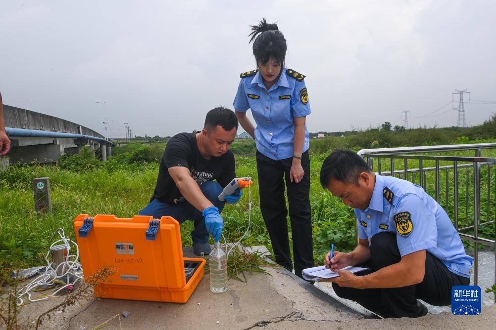 8月15日,湖州市生態環境局織裏分局工作人員在織裏鎮振興大橋水質監測點檢測水質。