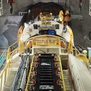 8月15日,在湖南平江抽水蓄能電站引水隧洞建設現場,工作人員查看“天岳號”掘進機作業情況。