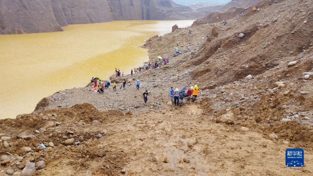 8月15日,在緬甸克欽邦帕甘鎮,救援人員在玉石礦場坍塌事故現場搜救到一名遇難者。