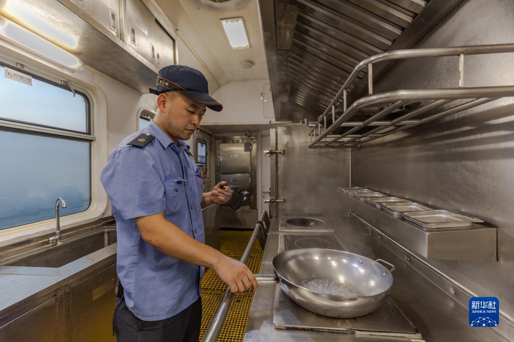 8月15日,重慶車輛段工作人員在重慶西客車整備所對列車餐車電器設備進行檢測調試。