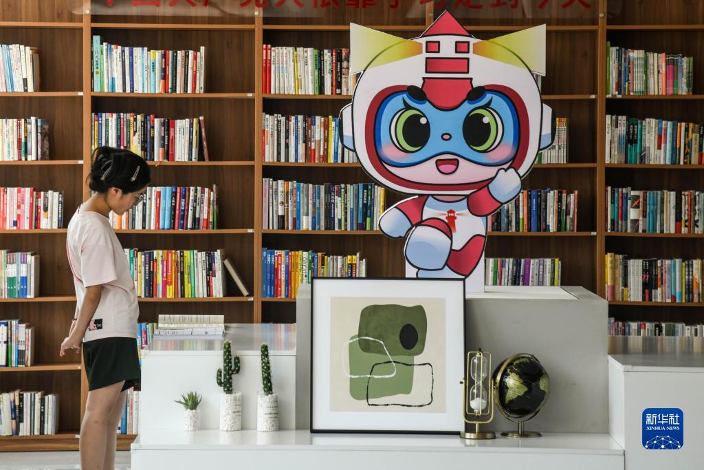 8月15日,一位居民在馬山鎮社區圖書館內閱讀書籍。