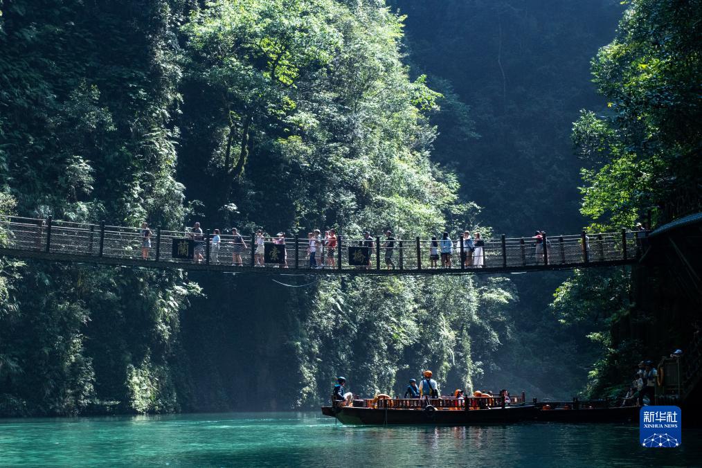 湖北省恩施土家族苗族自治州鶴峰縣森林覆蓋率高,空氣清新,氣候宜人。位於該縣容美鎮的屏山峽谷,全長約18公里,峰巒與河谷高差達千米,最窄處僅五尺,形成罕見的峽谷和地縫特色風光,碧水、輕舟與絕壁、森林相映成趣,每年吸引眾多海內外游客前來觀光。