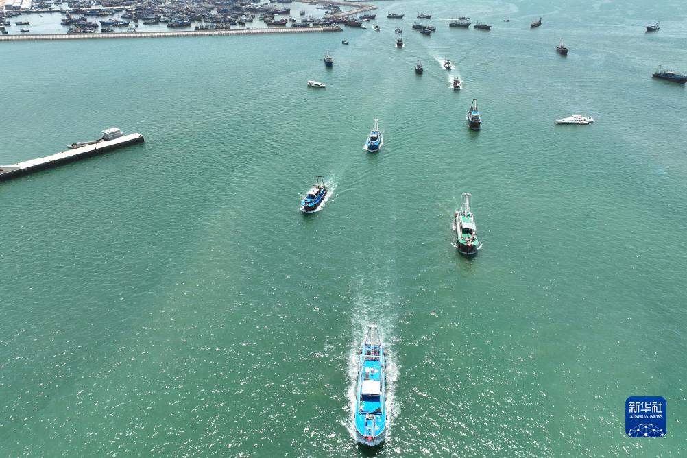 8月16日中午12點整,南海為期三個半月的伏季休漁期結束,停泊在海南省臨高縣新盈漁港的漁船紛紛出港,開始進行捕撈作業。