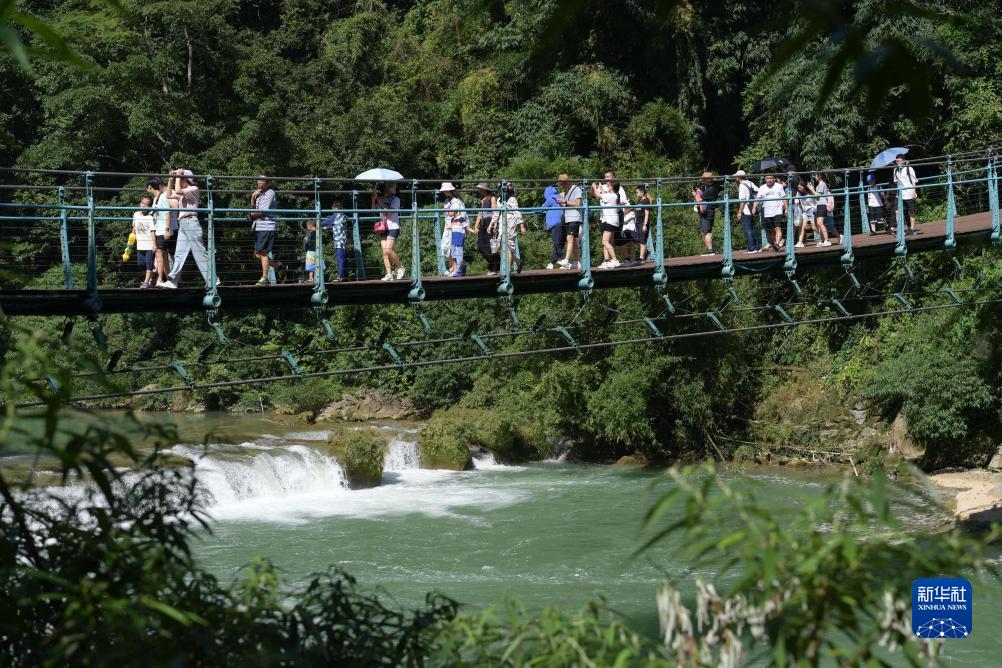 8月16日,游客在貴州省安順市黃果樹瀑布景區游覽。