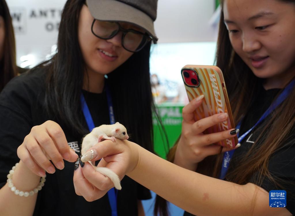 8月16日,觀眾在第25屆亞洲寵物展覽會上與蜜袋鼯互動。