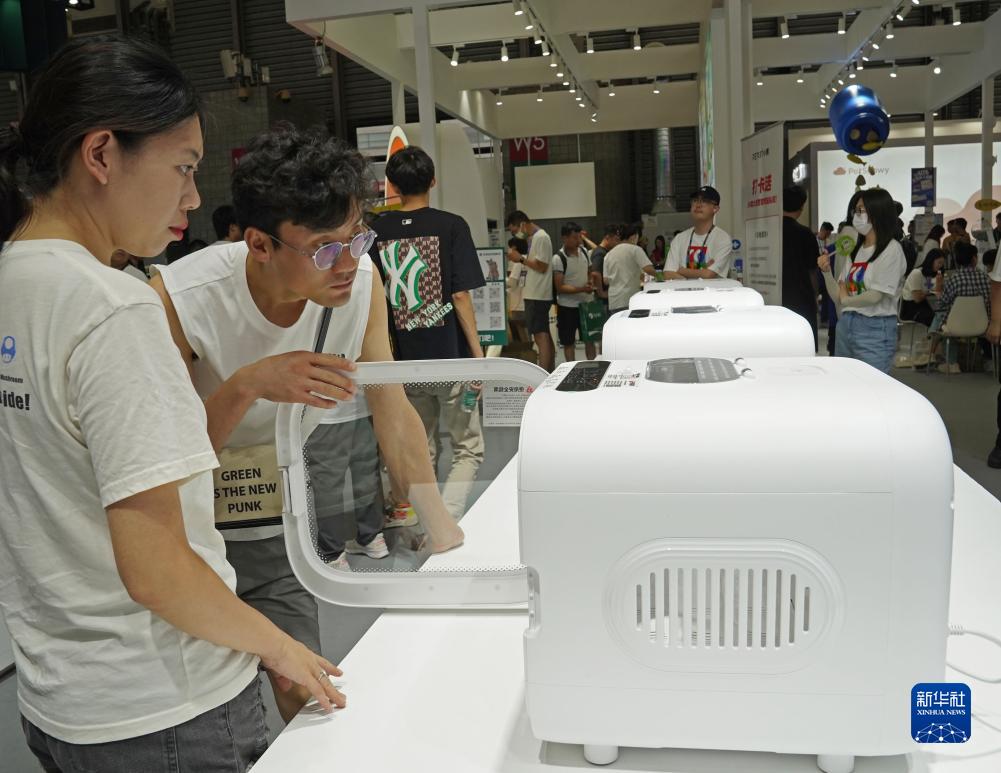 8月16日,觀眾在第25屆亞洲寵物展覽會上參觀寵物智能烘乾箱。
