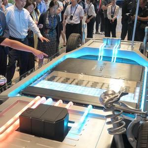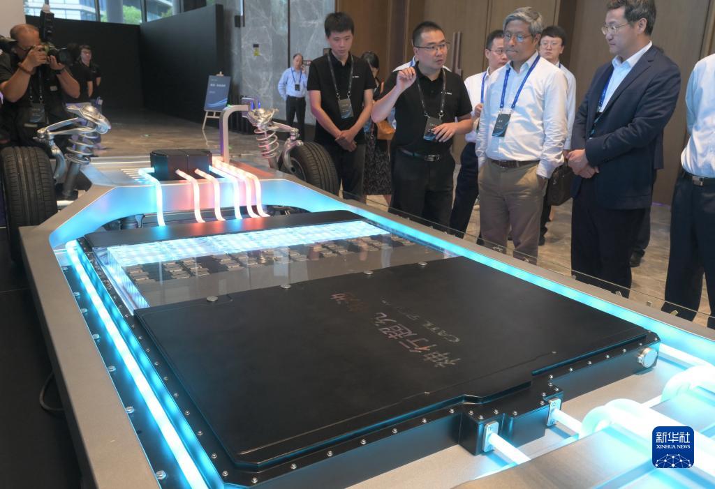 8月16日,工作人員向參觀者介紹寧德時代發布的神行超充電池。
