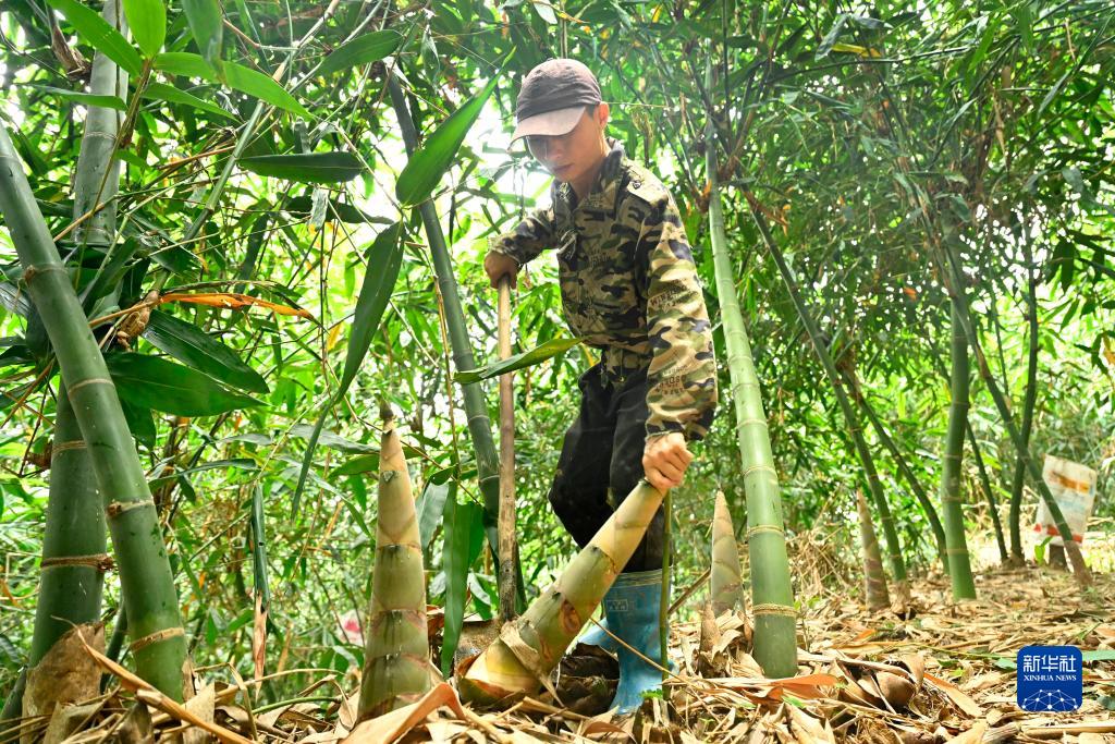 目前正值廣西柳州市柳城縣竹筍收穫的季節,柳城縣沙埔鎮種植的近萬畝竹林喜獲豐收,當地農民忙着挖筍、剝筍、腌制酸筍,隨處可見忙碌的場景。近年來,柳城縣積極打造柳州螺螄粉原材料生産基地,大力發展竹筍種植和深加工産業,帶動農戶增收致富,助力鄉村振興。
