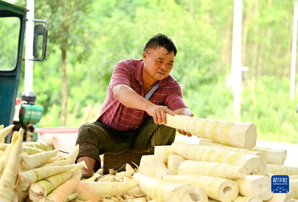目前正值廣西柳州市柳城縣竹筍收穫的季節,柳城縣沙埔鎮種植的近萬畝竹林喜獲豐收,當地農民忙着挖筍、剝筍、腌制酸筍,隨處可見忙碌的場景。近年來,柳城縣積極打造柳州螺螄粉原材料生産基地,大力發展竹筍種植和深加工産業,帶動農戶增收致富,助力鄉村振興。