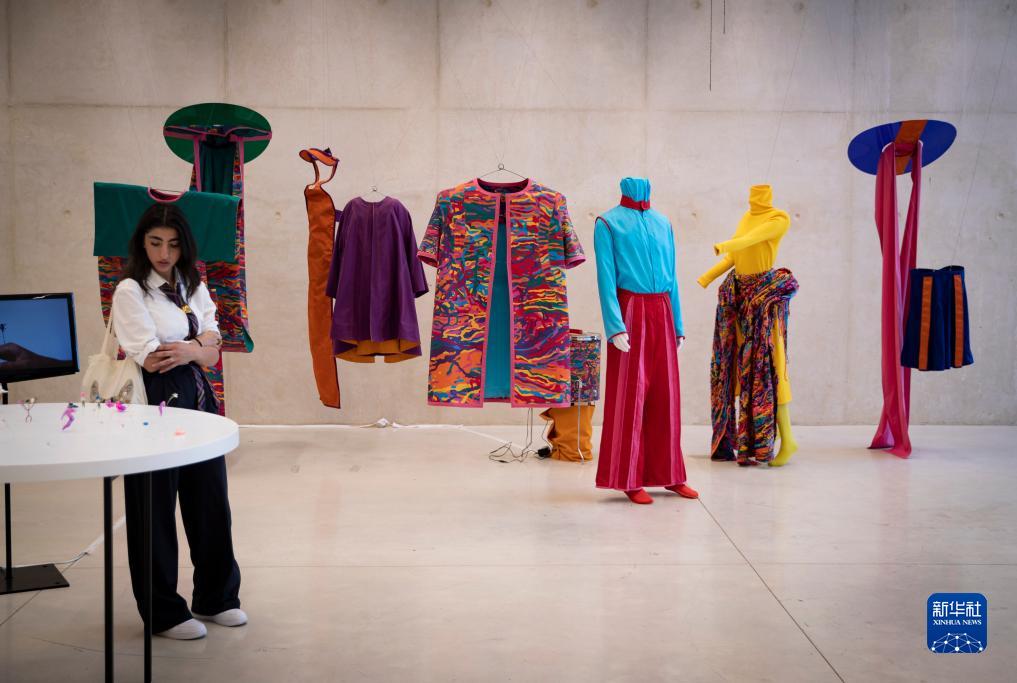 這是8月15日在以色列比撒列藝術設計學院畢業展上拍攝的服裝設計作品。