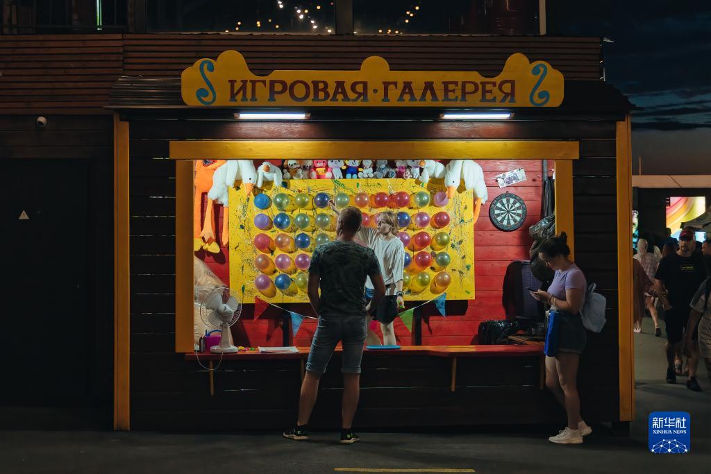 這是8月16日拍攝的位於俄羅斯遠東城市符拉迪沃斯托克阿穆爾灣的游藝小攤。