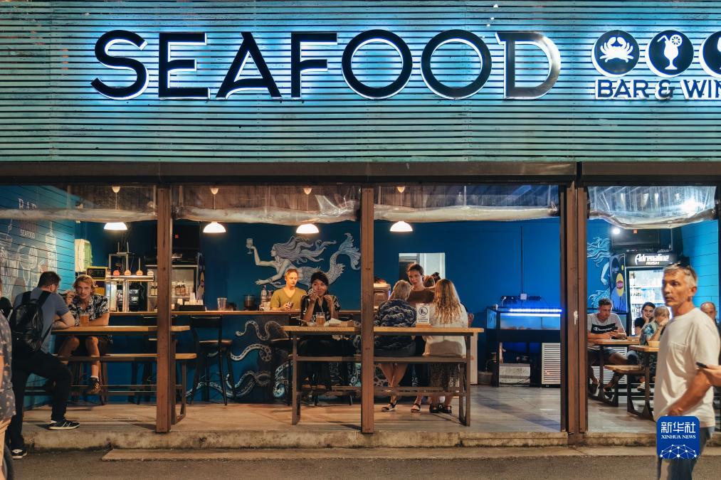 8月16日,人們在俄羅斯遠東城市符拉迪沃斯托克阿穆爾灣的一個海鮮餐吧用餐。