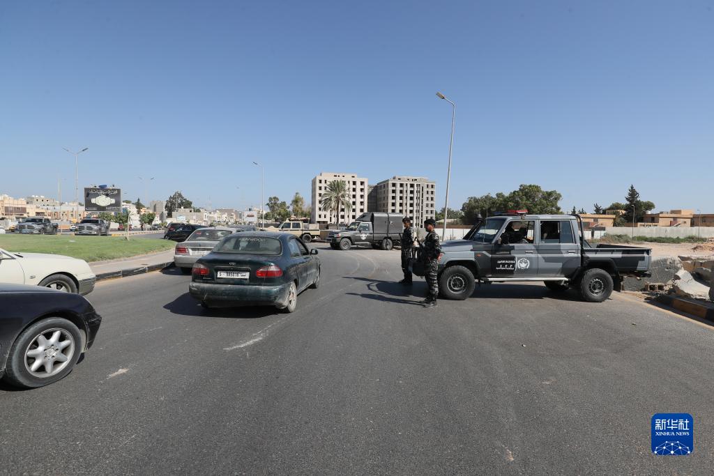 8月16日,利比亞衝突停火後,利比亞內政部執法部隊在的黎波裏的艾因扎拉區保障安全。