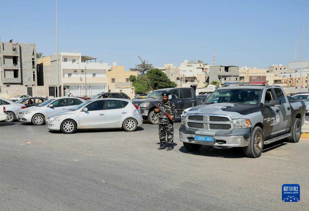 8月16日,利比亞衝突停火後,利比亞內政部執法部隊在的黎波裏的艾因扎拉區保障安全。