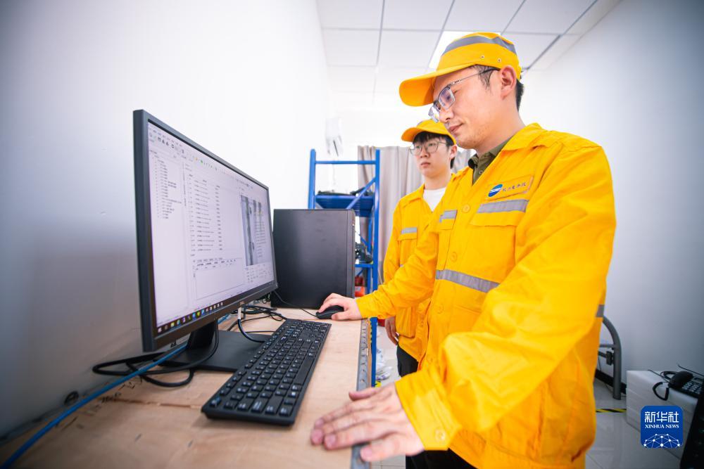 8月17日,杭州電務段工作人員在杭&高鐵中繼3站巡檢時查看機器人實時監測的機房情況。