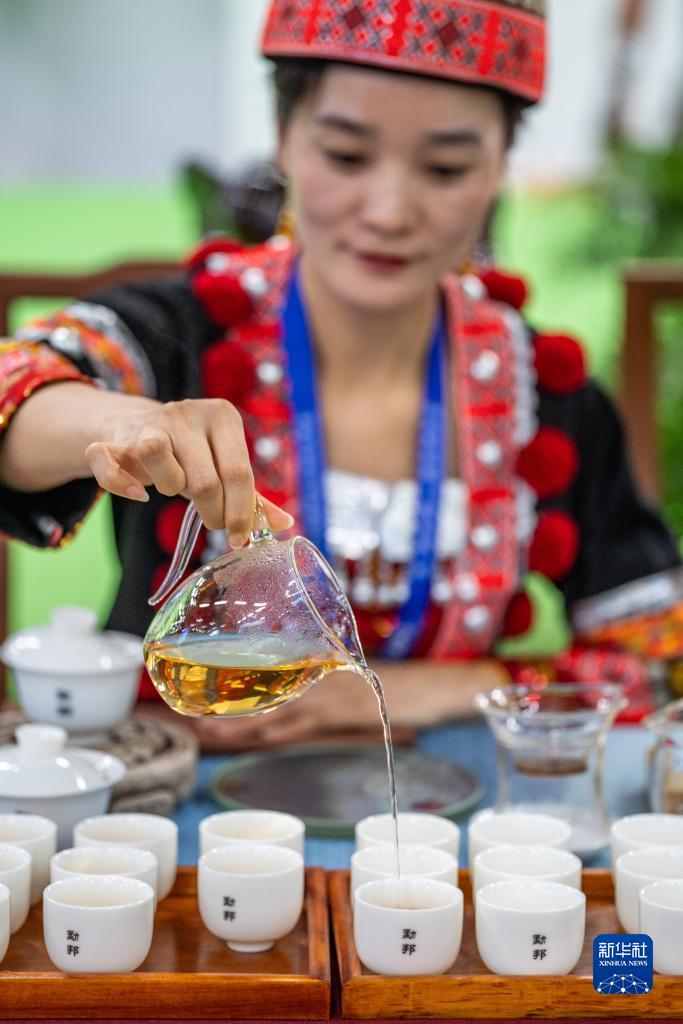 8月17日,一名茶企工作人員在南博會首屆南亞茶葉節上泡茶。