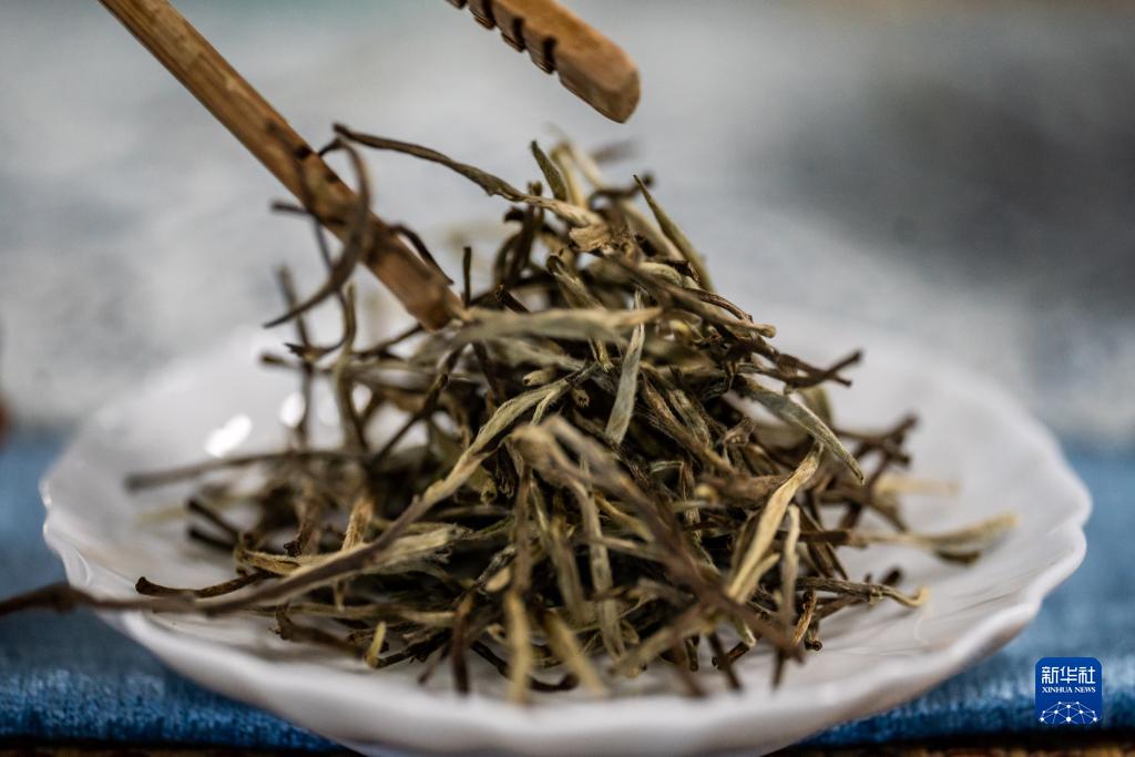 8月17日,茶企工作人員在南博會首屆南亞茶葉節上展示茶葉。